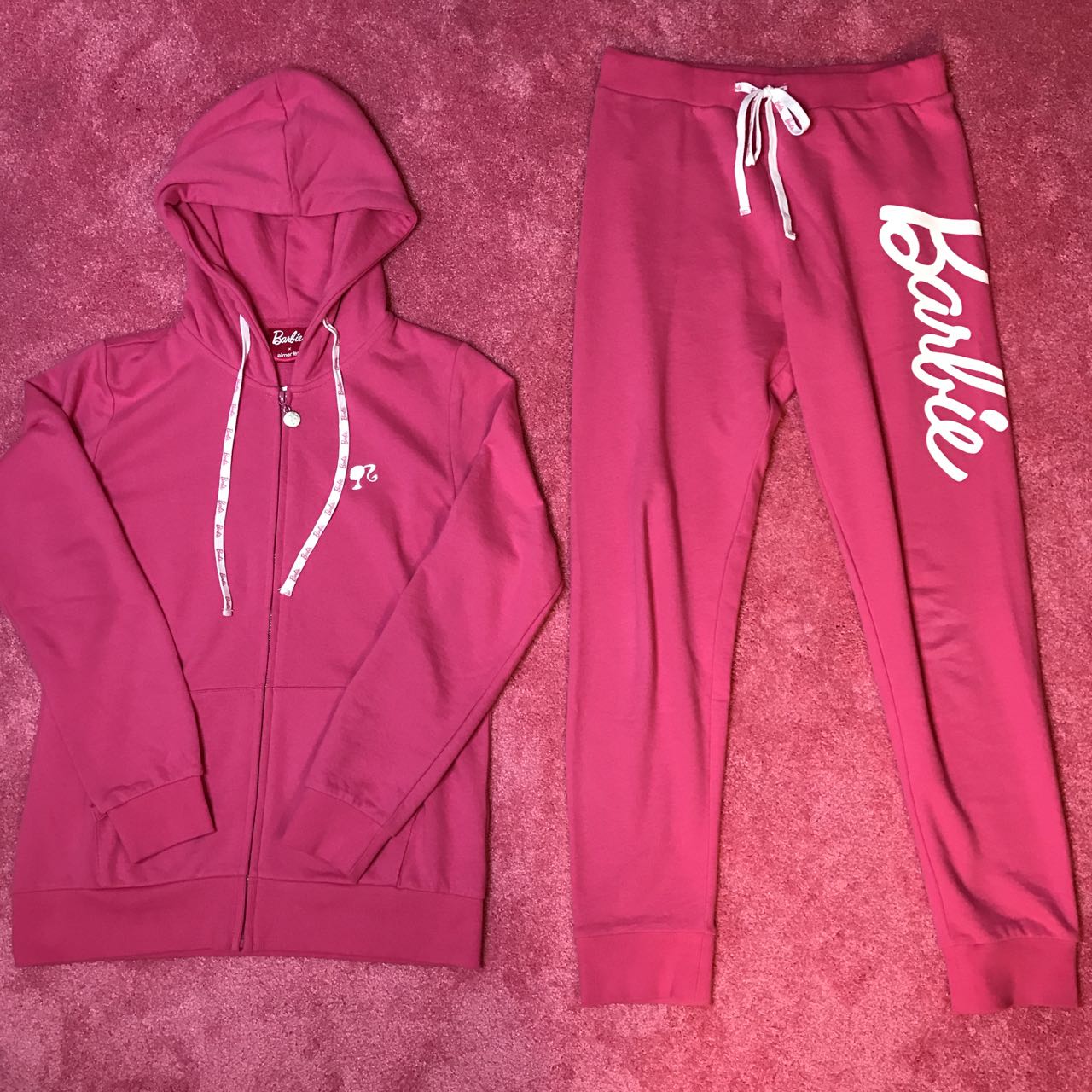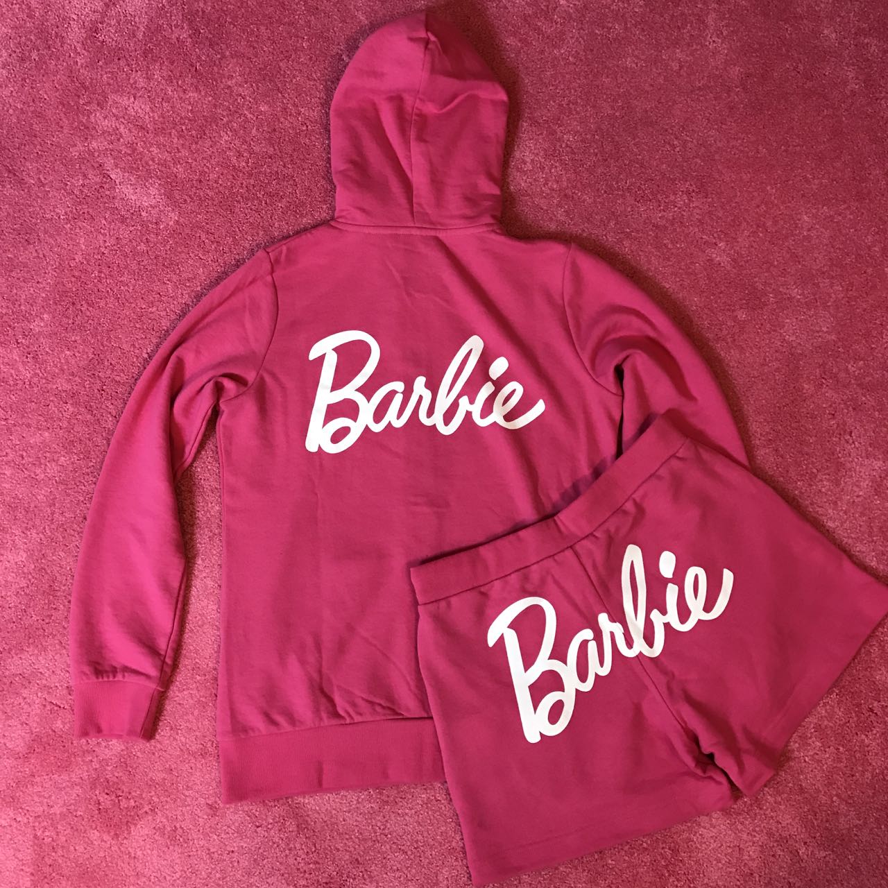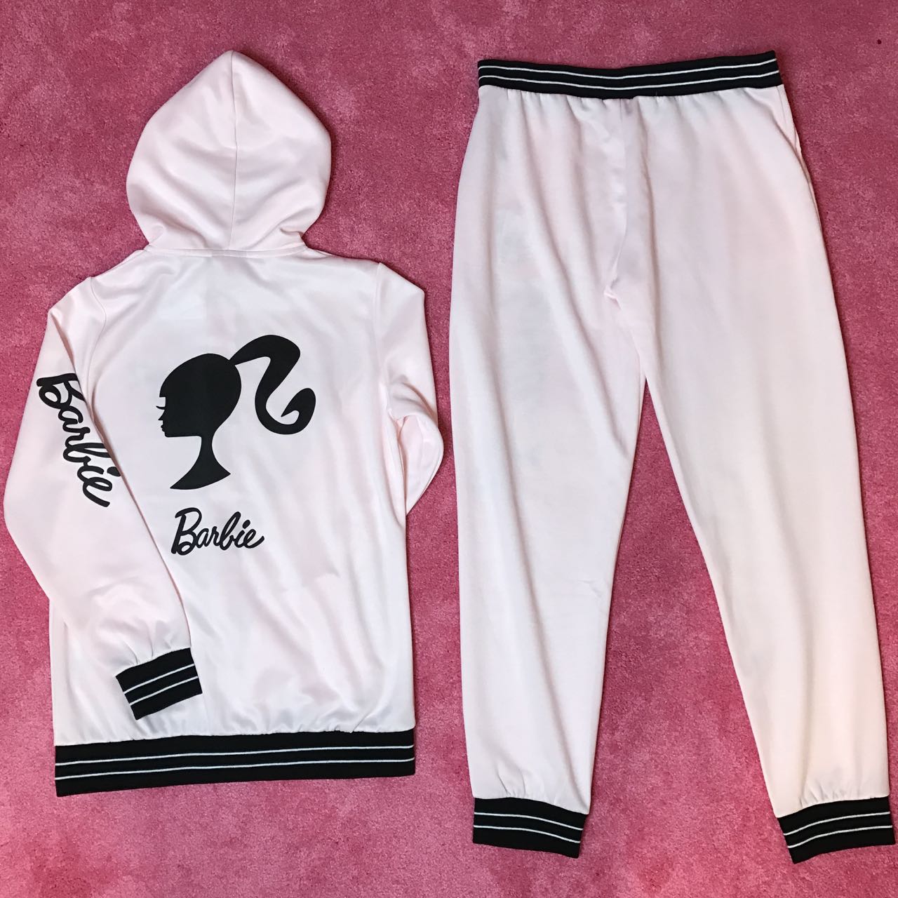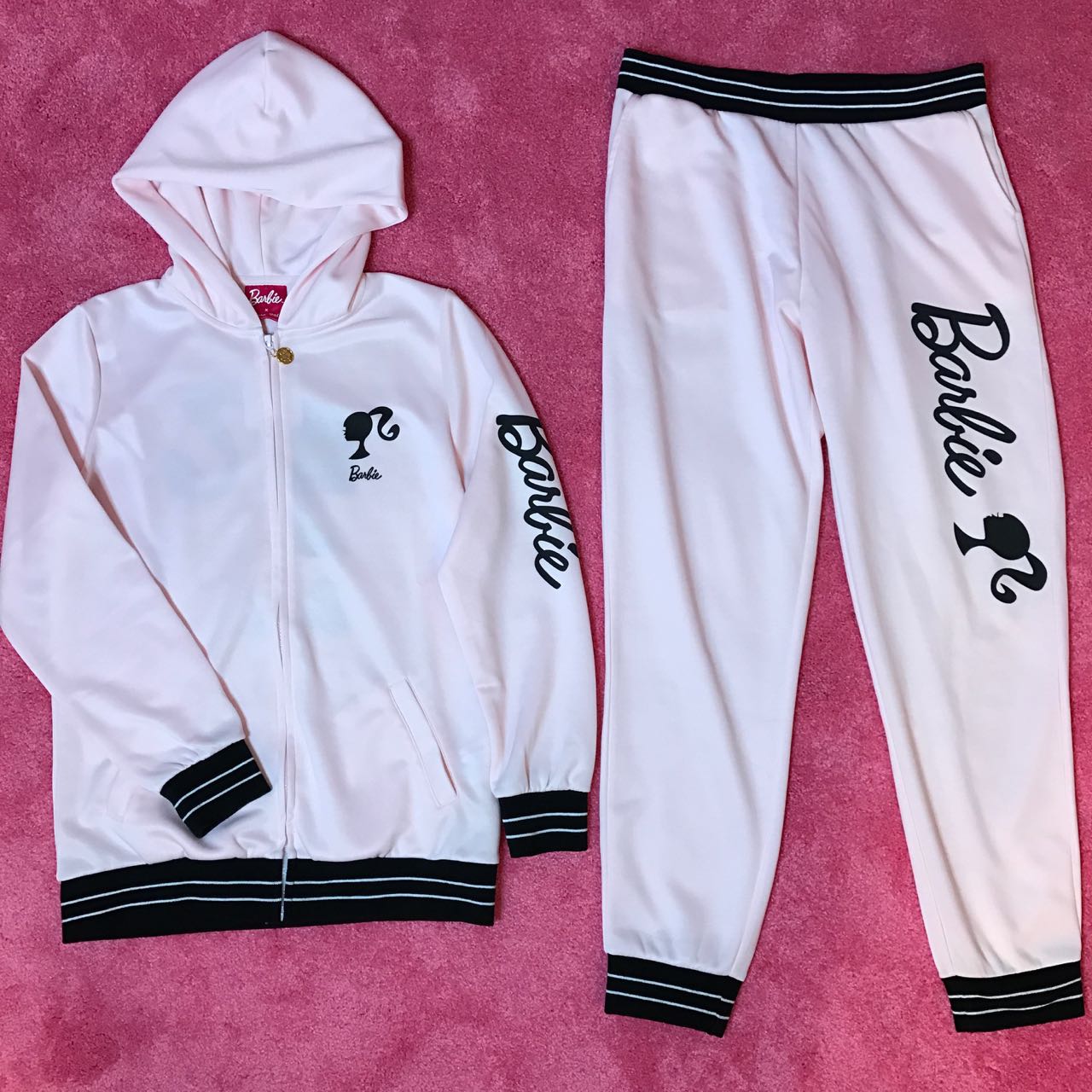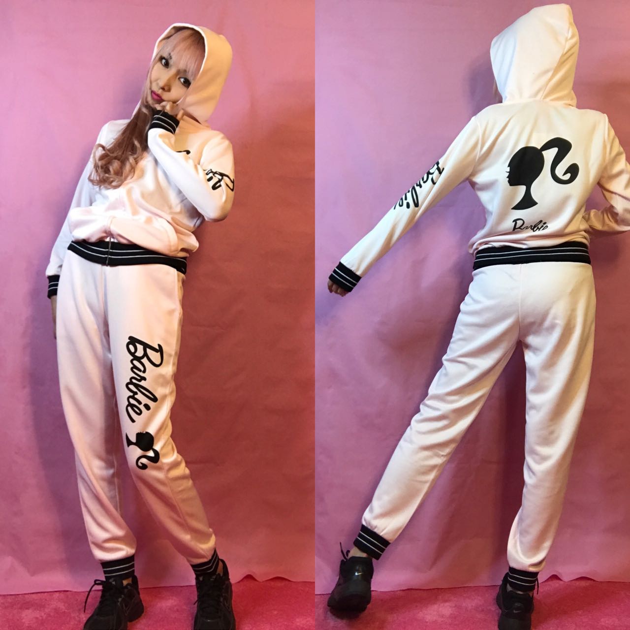 I found really cute Barbie sweat and jersey on Japanese website; aimerfeel. They do worldwide shipping but I just noticed they don’t have English website unfortunately.  So you might need to ask  someone who could read Japanese or use translator. I’m going to post some pictures of items I got, and post shop link as well. I purchased 3 pairs of zip up hoodie and pants, and one shorts this time! They sell top and bottom separately.