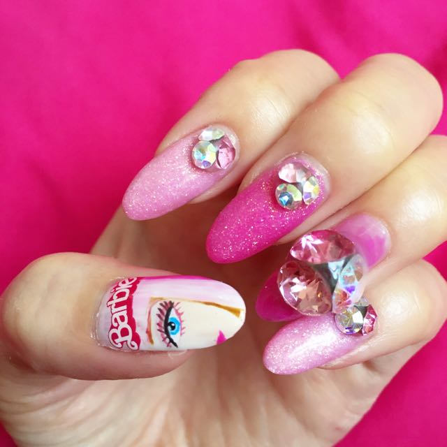All shimmer pink with 3D jewels and look at my thumb!!!