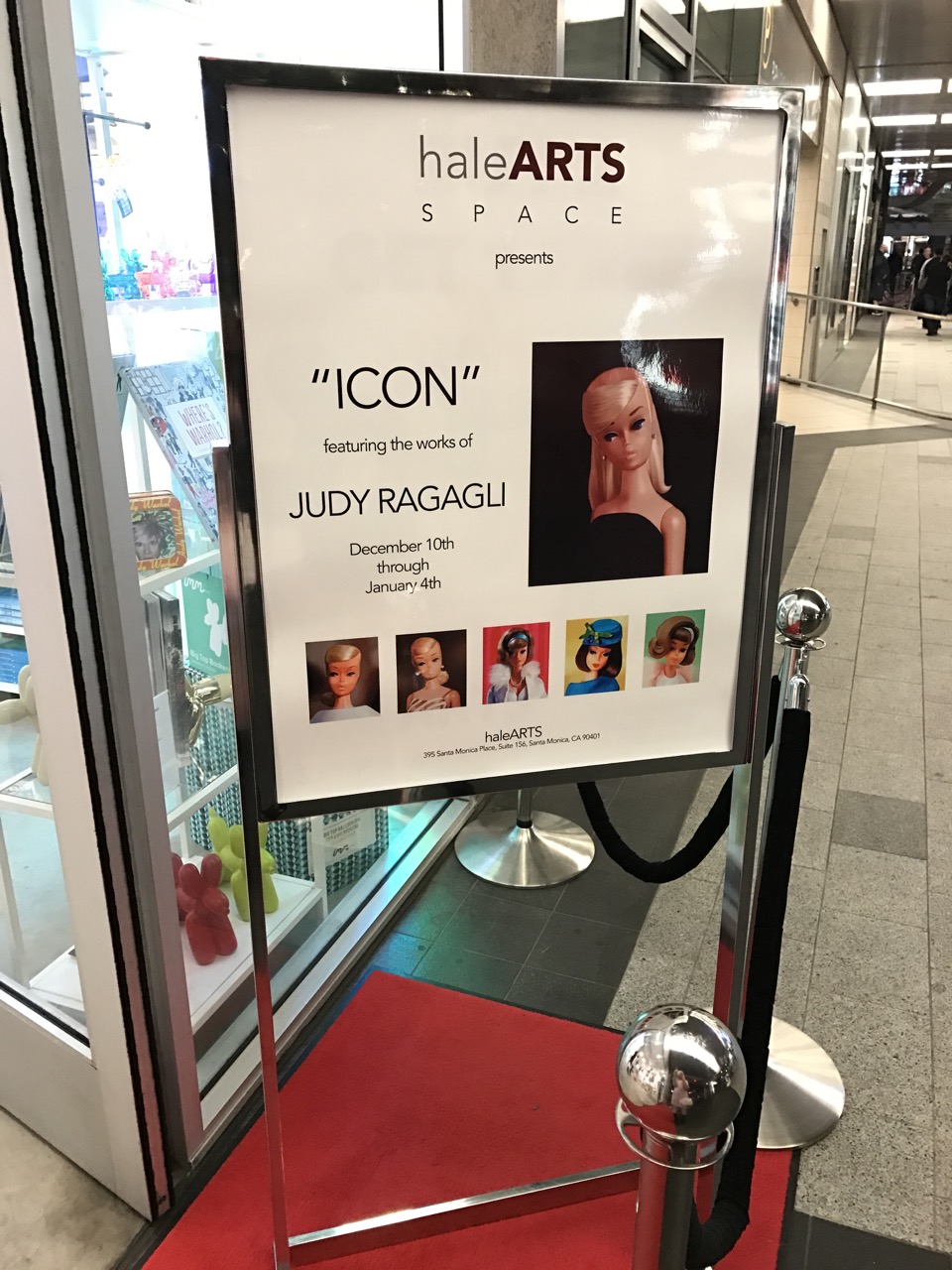 I met another Barbie artist Judy Ragagli and visited her exhibition at haleARTS S P A C E in Santa Monica. Her show is from DEC 9th thru JAN 4th and they have two locations; the one is at Santa Monica Place and the other one is on Main St. Santa Monica.