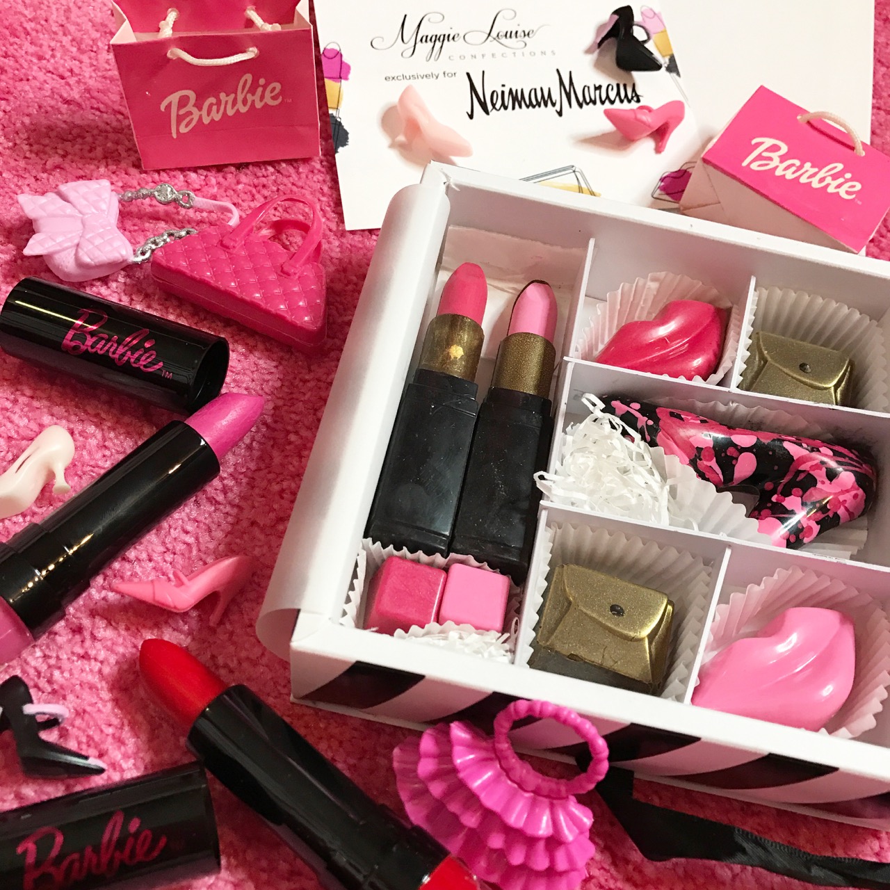 It’s Maggie Louise Confections for Neiman Marcus. I bet they taste really yummy but I’ll never know because they’re too cute to eat. No way for me to eat them! Their chocolates are one of the best ideas for a gift for Barbie girl.