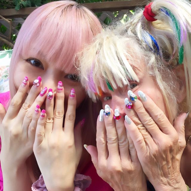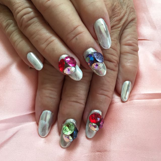 She got chrome nails and put multi color swarovski crystals as always♡ They match to her rainbow hair;) xoxo