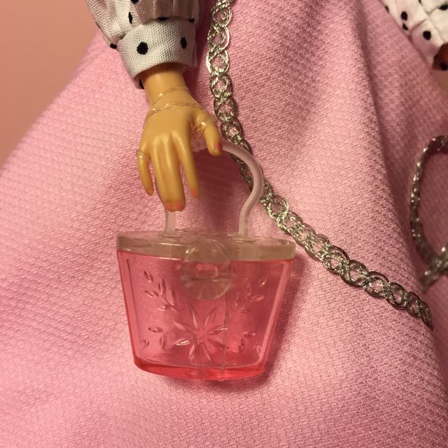 Her sheer pink purse, her nail color…