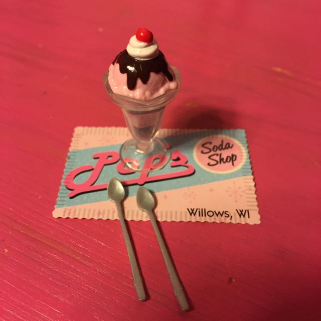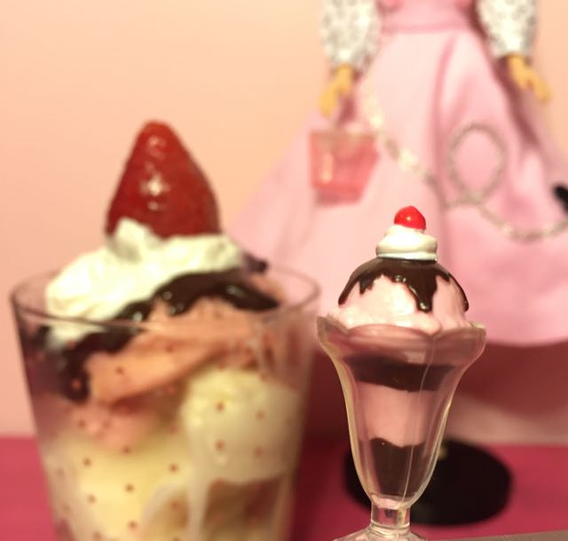 Chocolate sundae, placemat, and spoons. I love they put “2” spoons for Barbie and Ken to share the sundae…♡ It’s so sweet…